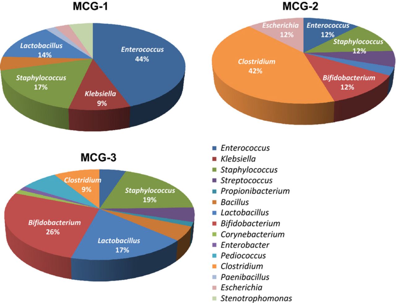 - “experiments with pregnant mice orally administered a labeled Enterococcus faecium strain showed a low level transfer of the labeled strain to the fetal intestine and a higher level transfer to the mammary glands”