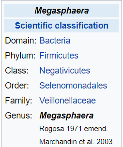 - Megasphaera indica sp. nov., an obligate anaerobic bacteria isolated from human faeces [2014]. “99.2% 16S rRNA gene sequence similarity, respectively, with Megasphaera elsdenii”