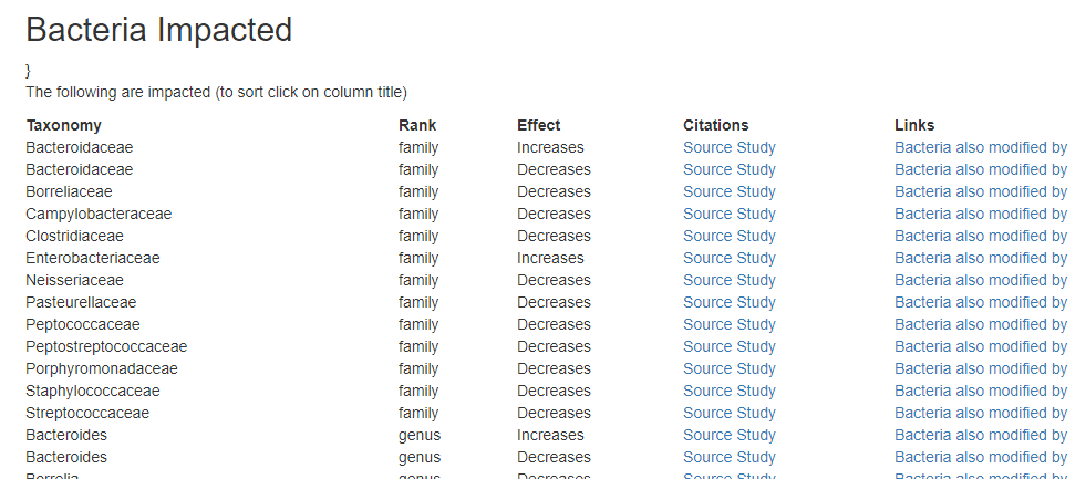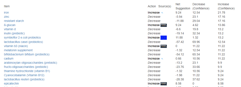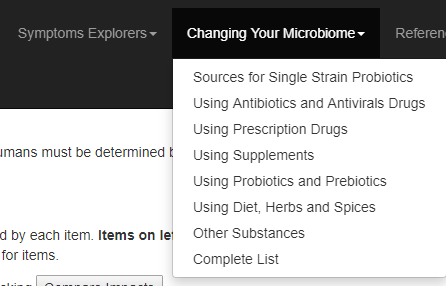 Again, we have a button [Get Suggestions for reversing impact on Microbiome]. Click it and you will be taken to a suggestion page (with actually more options).