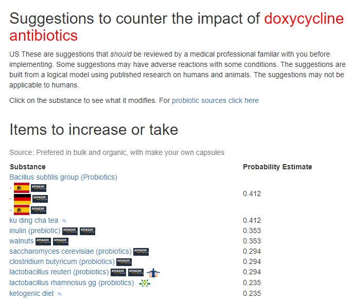 A friend asked about how to modify their diet to minimize the impact of doxycycline. I had an old page on that but discovered that it was both broken and inconsistent with revisions and new features. I have brought it up to standards.