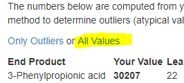 I have updated the page to stop using averages (which can be very misleading for bacteria populations) and move to the box-plot approach to identify outliers (atypical values). End product is experimental because we do not have a good reference source for what each bacteria produces. We know some of them, but not all. Also, different strains produce different amounts adds to the uncertainty.
