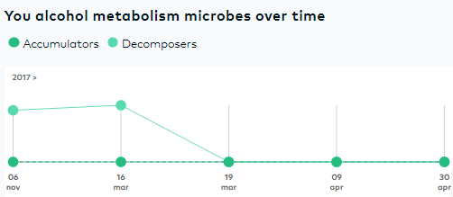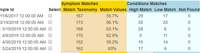 In terms of symptoms associated with bacteria, there was a significant drop in the number of Condition Matches. We must be careful not to read too much into that, because a microbiome in the process of changing (which we see above) will not match the patterns of people who are stable.