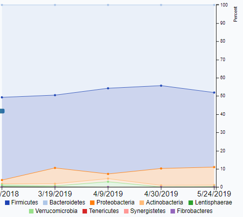 In terms of the rare/elusive bacteria, we see many of them disappear as the flare progresses, and strangers appear. The strangers are disappearing and some old friends, like Caldicoprobacter are returning. The high Bacillus count was likely from taking Bacillus coagulans as a probiotic.