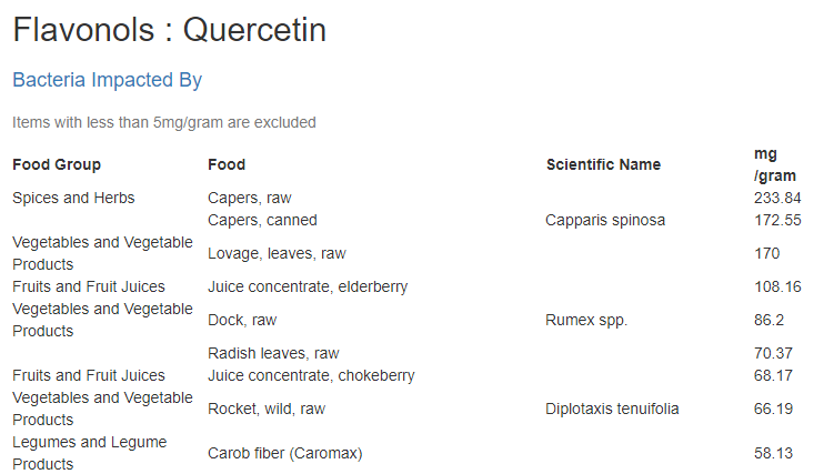 Stage #2 will be similar to what I did for probiotic mixtures — if there are multiple flavonoids in the suggestions, then the foods containing them will be examined and a relative weighing of the foods will be done (Take, Mix, Avoid).
