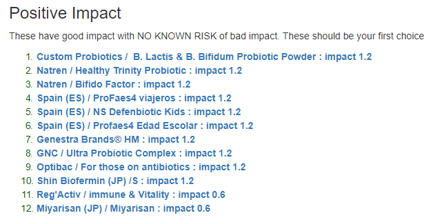 Self Experiment: Of the above probiotics, Shin Biofermin (JP) /S seemed the best to try — small hard tablets (Normal dosage is 18) that lends itself to dissolving in the mouth. At bedtime, I slowly dissolved two in the mouth. That night I slept the hardest that I have in months. (I have added a link to a world wide shipper on the above probiotic link)