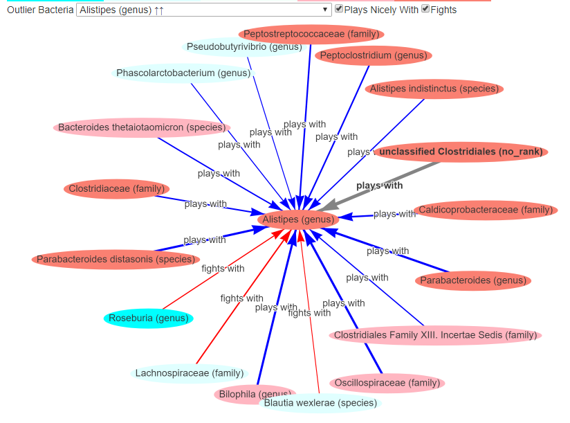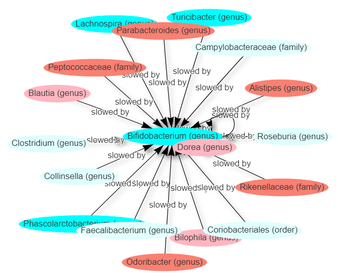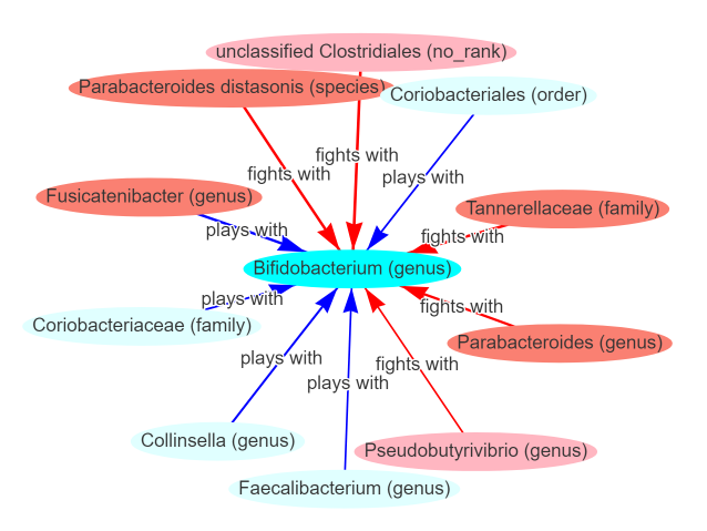For this one, conventional science only reports what inhibits/fights with it. Citizen Science show bacteria that cooperate with it also. In some cases, we have opposite reports: Faecalibacterium slows Bifidobacteria in one case, and plays with it in the other case!