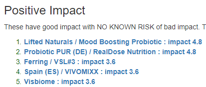 Why amused? We put in the above genus shifts associated with high anxiety and the AI system determined that the best out of 137 probiotics in the database was one that was branded for Mood (whose bacteria were found in independent studies to help moods). It suggests that the AI system is doing a very respectable job of coming up with suggestions!