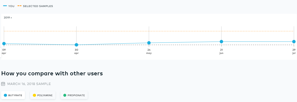 The Diversity score is sitting at 87%ile (more species than 9 out of 10 people — a real cosmopolitan gut) but appears to not reflect the ME/CFS state in any way. The numbers for diversity and wellness reported by uBiome is shown below, they do not appear to correspond well with the onset and likely of limited or no value.