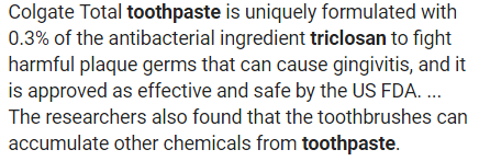 Dr. Axe also lists a ton of issues with commercial toothpaste, for example, Triclosan: