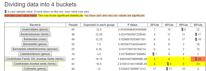 If you click on the bacteria button, you will be taken to the bacteria summary pages which may suggest changes desired. As always, changes of diet, supplements etc should always be reviewed with a knowledgeable medical professional before implementing.