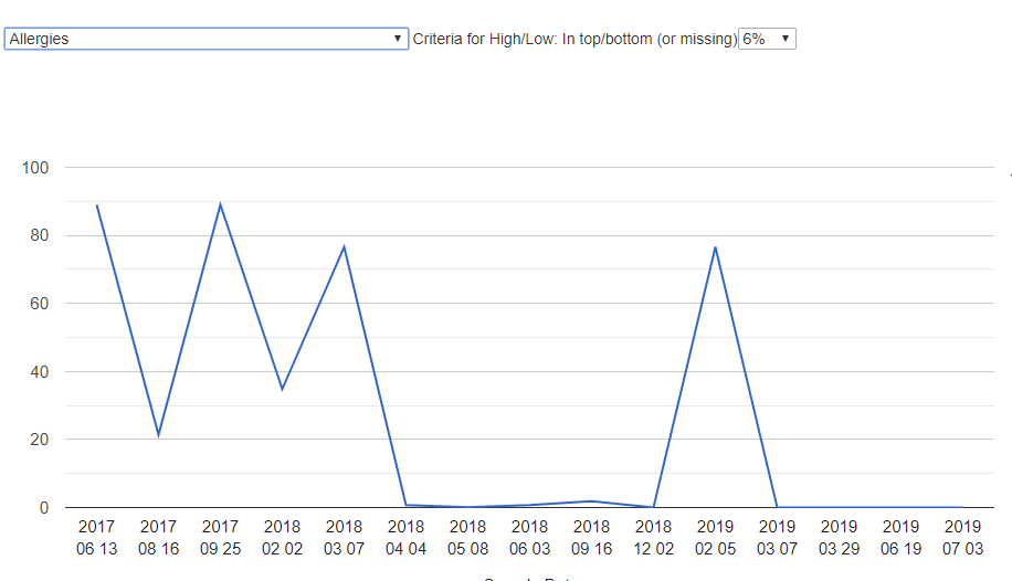 This tool may be useful as you build up samples over time. Often one sample gets odd numbers and we have a spike with before and after samples showing a constant pattern.