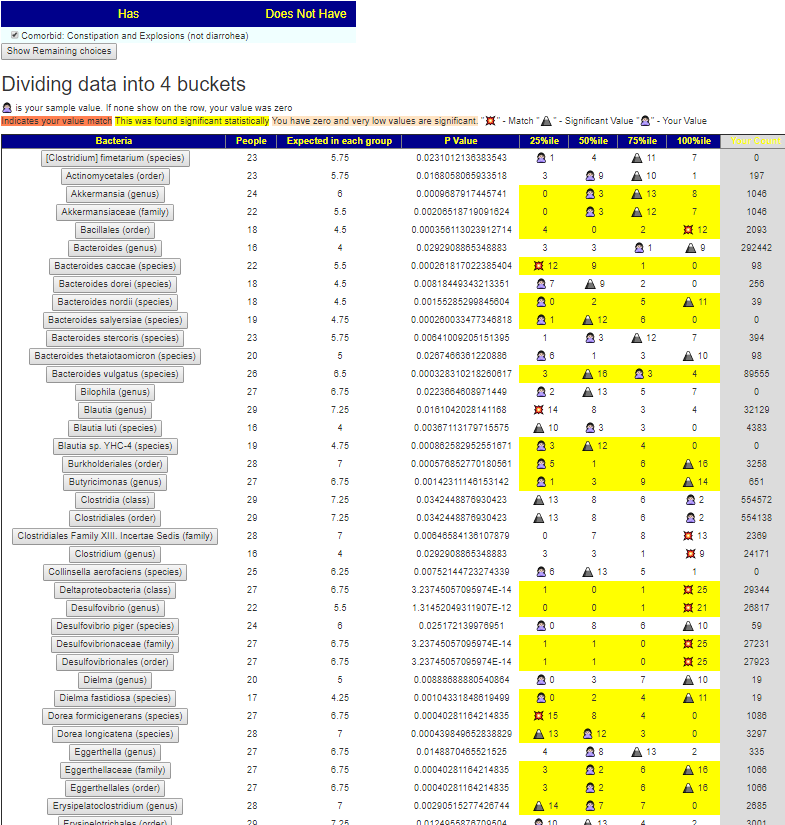 The first item is that Thryve is building their report on “compared to those of the healthy population from the American Gut Project“. Oops we have an apples to crab apples scenario, different equipment, different processes. I am disappointed that they do not have a reference using only their equipment and samples. uBiome attempted to do that (but some employees submitted their pet’s microbiome into the mix!)