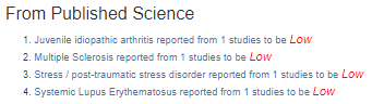 Thryve attempts to give health benefits and associated diseases. Again, they seem to have old stale information.