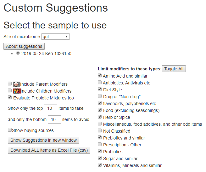 There are various filters available (i.e. use only bacteria associated with some medical conditions), but some people wish to really focus on certain bacteria only. A recent enhancement provides that ability