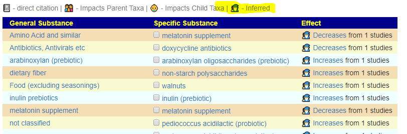 These were determined by the “Friend-or-Foe” analysis. This was done by examining which pairs of bacteria increase or decrease with a strong relationship (correlation). If something like Walnuts causes my friends to increase, then it will likely cause me to increase as a side effect. If Melatonin causes my friends to decrease, then it will likely cause me to decrease.