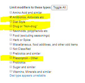 The microbiomePrescription site supports evaluation of antibiotics against a microbiome, as well as other prescription drugs.