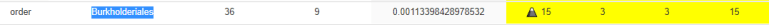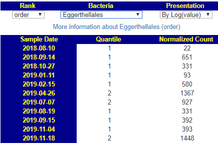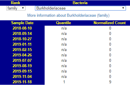 Burkholderiales Unusual!! Low and High (few middle ranges). Clicking the link I see 94% have measurable quantities – for only 1 out of 11 samples to have it is a 1 in 174,000,000,000 chance….