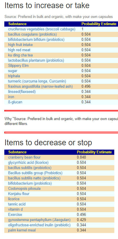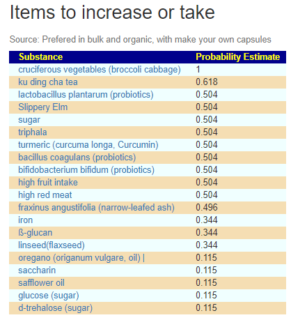 We asked for 30 items, and got less – running with direct citations. It was interesting to see Triphala on the list because it reduces many bacteria and may as a consequence increase these!