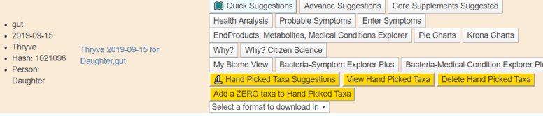 Just check the ones that you wish to include. My rule of thumb is to go down to 1/2 of the highest value (i.e. 16.5 or higher, since the high is 33). Then create the custom profile. At this point it will evaluate all of the samples and add this hand picked to the best sample. (You may wish to delete other hand picked taxas before doing this — so you can find it!)