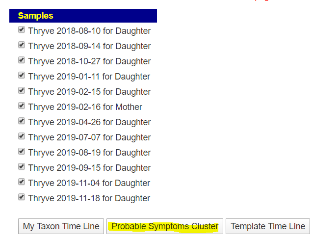 On the next page, select the samples to be included and click [Probable Symptoms Cluster]