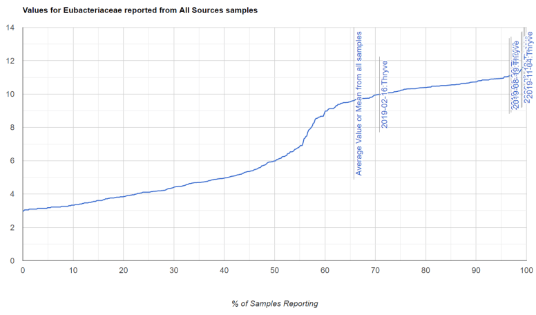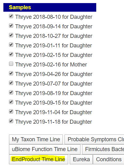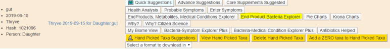 At this point we have several choices – we could click on Eubacteriaceae or Eubacterium and pick up items to add or remove from the menu. Instead, recall in my Child Autism microbiome over time – Part 2 post, we had a hand picked taxa. I am going to add it to that existing mixture: