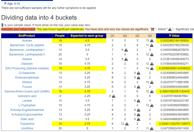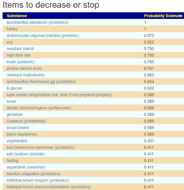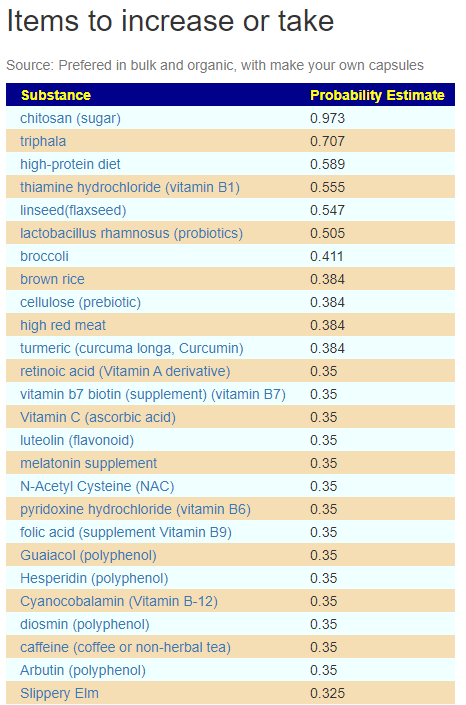 We ended up combining several parts of this analysis into one hand picked taxa to adjust and have a good list of changes to consider in consultation with your medical professional.