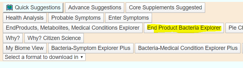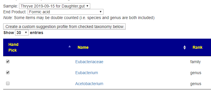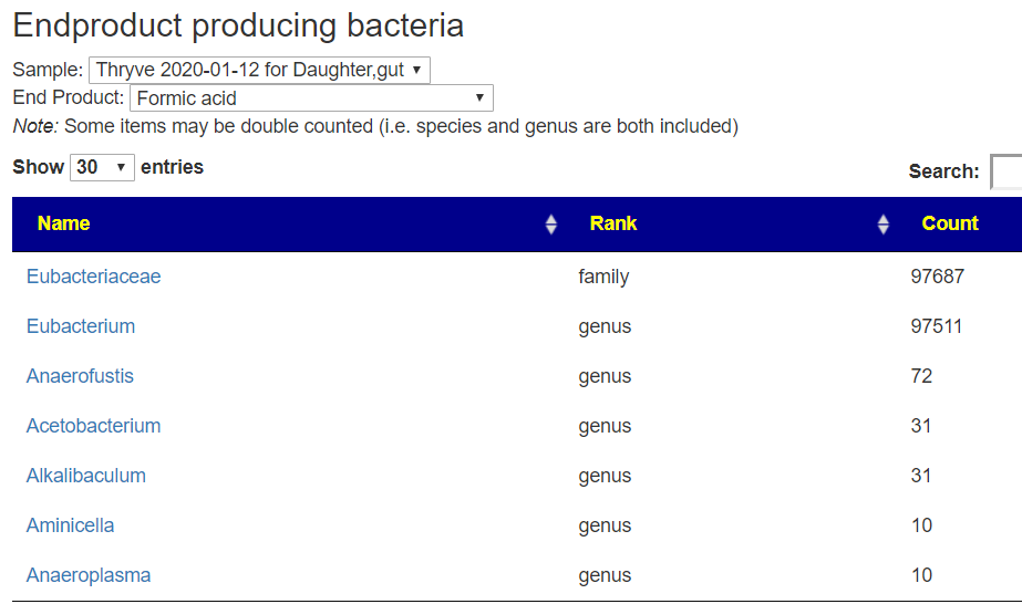 The data driving end-products is not as complete as I would like it (if you know of a good source of end product to taxa, please email to me!). I refer to it as experimental because of the lack of solid data. Many of the taxa reported to produce some end products are not reported on by 16s labs.