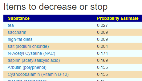 And the list goes on with Apples, magnesium, selenium, oregano being on the positive list by inference.