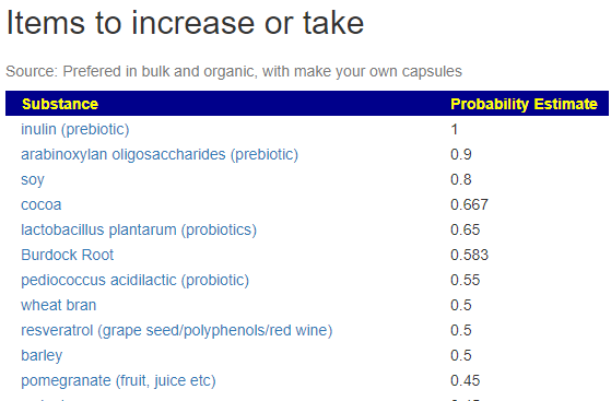 Above that are specific items like prebiotics by explicit type. Some prebiotics may be on the avoid list. What is suggested with this combination of bacteria is partially below