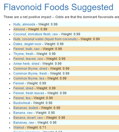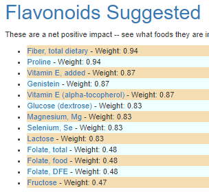 Flavonoid Foods are similar but cinnamon, nutmeg, and oregano are gone.
