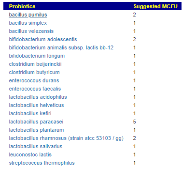 I also used the GI Maps results alone with the page cited above and got the following list, with Holigos being at the top. We also see lactobacillus paracasei appearing close to the top of the list.