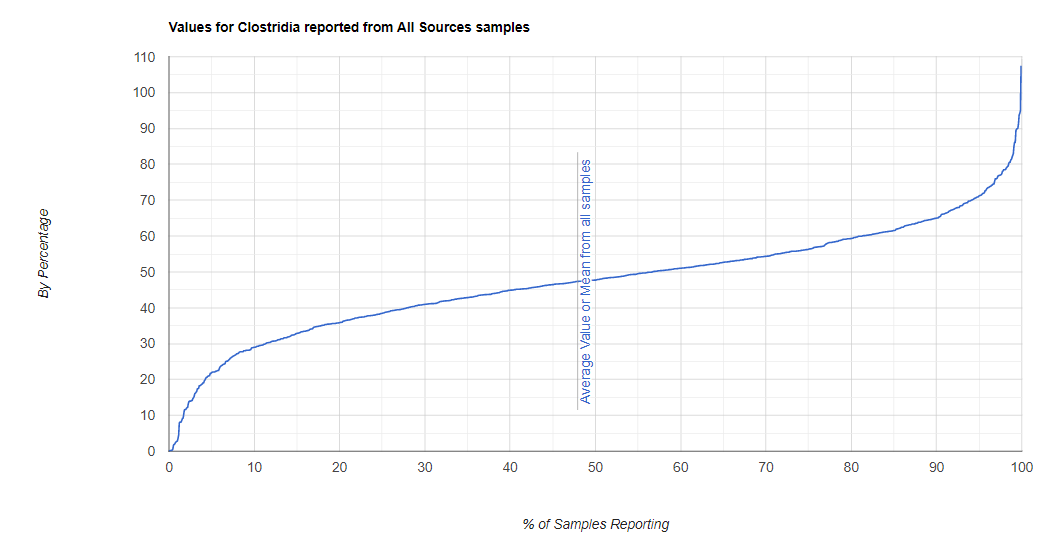 The following abnormalities were reported. We cannot get the percentile ranking from MicrobiomePrescription.com because they give counts without declaring what 100% is, it appears to be over 3.3E12 i.e. 3,300,000,000,000, since that is the upper limit for one of the phyla. I attempted on computation below with nonsense results.