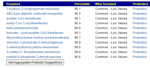 - Items that will help shift the microbiome to a better state (fixing the root problem) – this is based on one of dozens of possible filtering of bacteria into subsets.