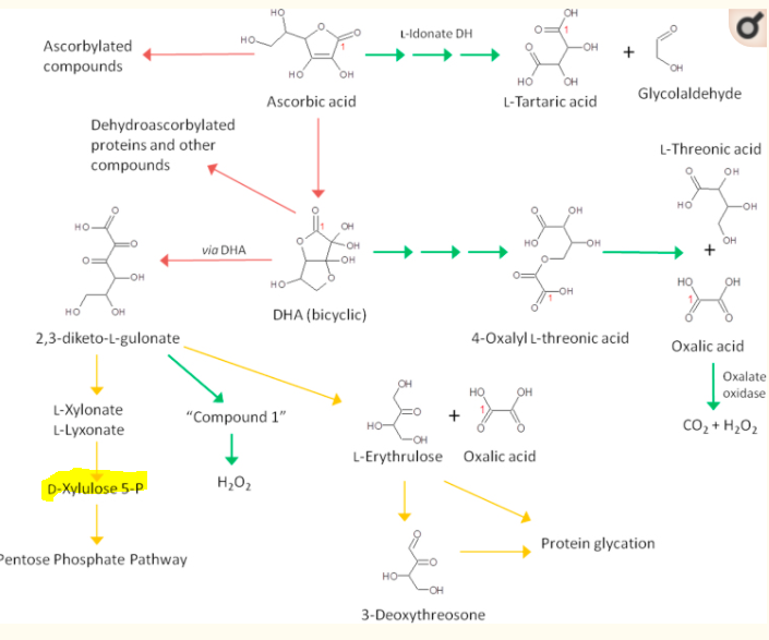 The first item above is associated with Vitamin C (Ascorbate) and influences gene expression [2018]. Looking at the chart below, I notice that H2O2 (hydrogen peroxide) is associated with it. Hydrogen peroxide is a major player for controlling some bacteria. It also feeds the Pentose phosphate pathway which cites “The PPP is one of the three main ways the body creates molecules with reducing power, accounting for approximately 60% of NADPH production in human”