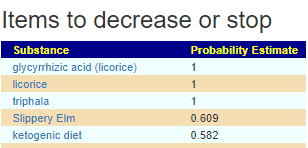 Looking at the suggestions, we only find one item in common with the prior ME/CFS person: inulin (prebiotic).