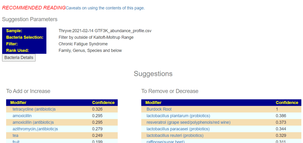 The artificial intelligence on the site put these items in the top suggestions based solely on the microbiome. It is my belief that success or failure to treat depends on the microbiome (which is usually ignored!). There have been some recent studies finding that the microbiome was a key factor in the success or failure of some cancer treatments.