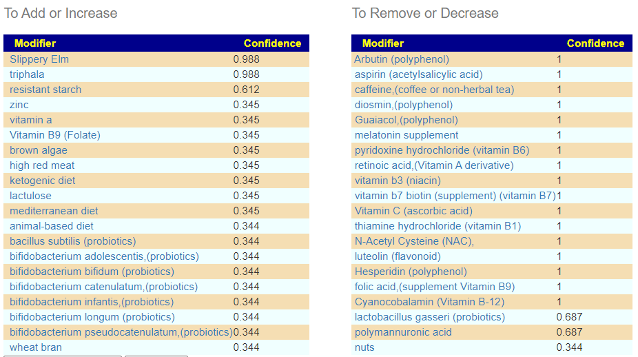 Remember, all suggestions should be discussed with a medical professional before doing. The Microbiome Prescription site goal is to model a variety of diseases and compute theoretical candidates for treatment. In some cases, like this post, we find that many candidates have been tested with positive results. Other candidates have not been and thus are potential ones (with logic and studies inferring their benefit).