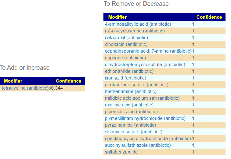 The physician being worked with is not dogmatically opposed to using antibiotics. So I did antibiotics only suggestions with the results shown below. Remember this is off label use of these antibiotics.