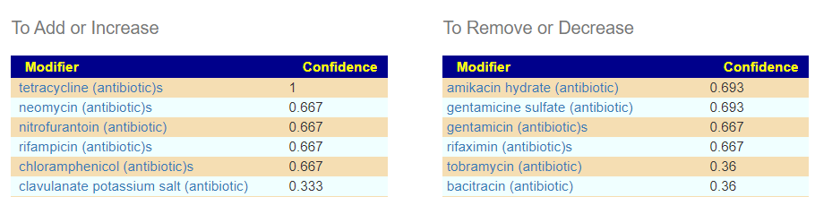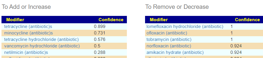 The physician being worked with is not dogmatically opposed to using antibiotics. So I did antibiotics only suggestions with the results shown below. Remember this is off label use of these antibiotics.