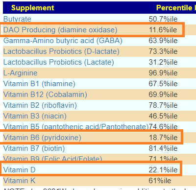 While core supplements has largely been replaced by KEGG, it is still available. There was only one supplement computed that strongly suggests supplementation, DAO. There is no studies on PubMed for CFS and DAO, however DAO does reduce histamine levels — it is a possible experiment to try. I know several people with ME/CFS that have histamine issues, in some cases, severe hay fever. There is some literature in this direction: