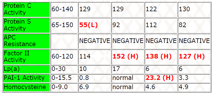 tomorrow I have an appointment with a cardiologist, and I want to check for thick blood/coagulation if possible. What blood values would I need to test? Fibrinogen, Prothrombin Fragment 1+2, Thrombin/ AntiThrombin Complexes, Soluble Fibrin Monomer, and Platelet Activation. Is that right?