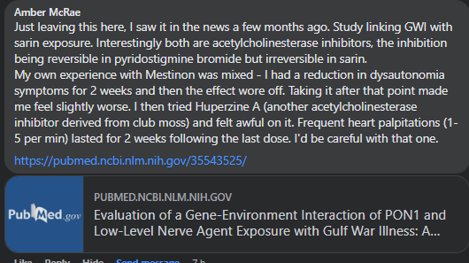 Hello, my brother has CFS and I would like to ask you a question. We talked to a doctor at the ‘…..’ hospital in Germany who specializes on CFS. The doctor suggested taking Pyridostigmine bromide. What are your thoughts on that?