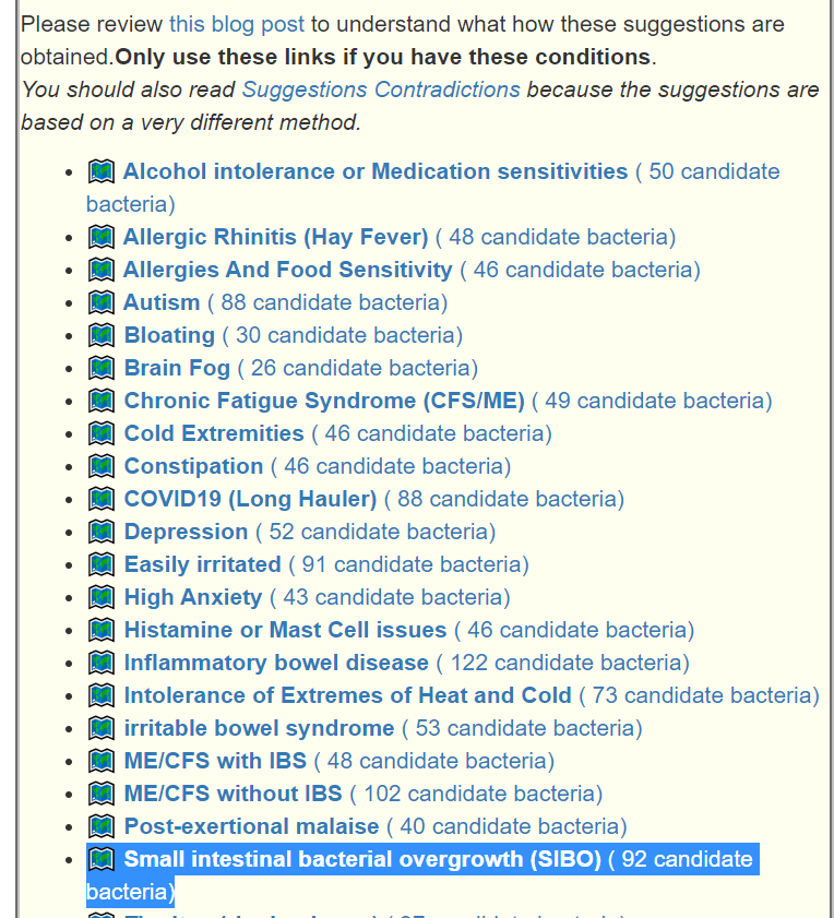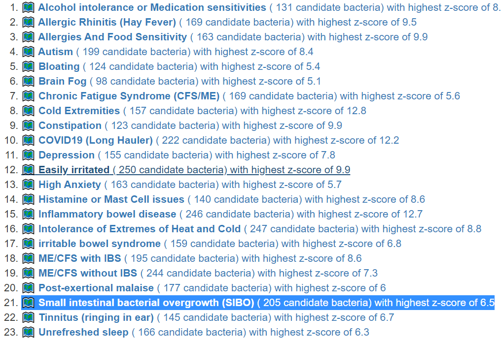 This is a common symptom for many people. This is reported often in samples, and thus being examined if it reaches our threshold for inclusion as defined in A new specialized selection of suggestions links. It does. We are not being specific about the type of constipation. The numbers are less than desired. If you have SIBO and a sample processed thru biomesight (if you have OmbreLab, see how to do this . 📹Video on Transferring Data from Ombre/Thryve to Biomesight ) and then add SIBO as a symptoms. The online data is recomputed once a month so it will improve identification and suggestions.